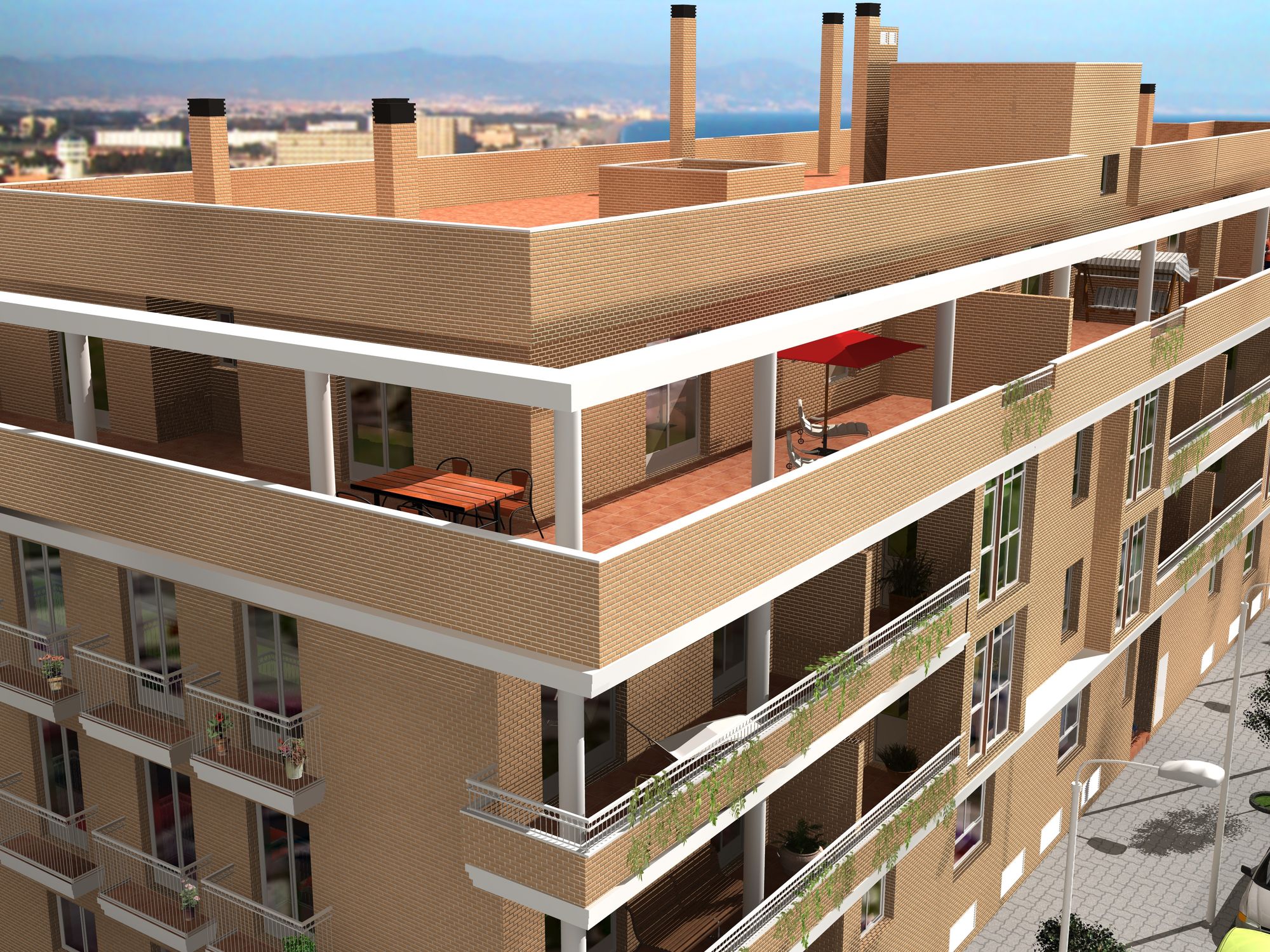 El encargo consistió en la creación de un conjunto completo de visualizaciones destinadas a la venta comercial de la promoción. El trabajo incluyó tres vistas exteriores del conjunto residencial, dos interiores de vivienda y un total de veintidós secciones de viviendas representadas mediante planos elevados en vista isométrica 3D.