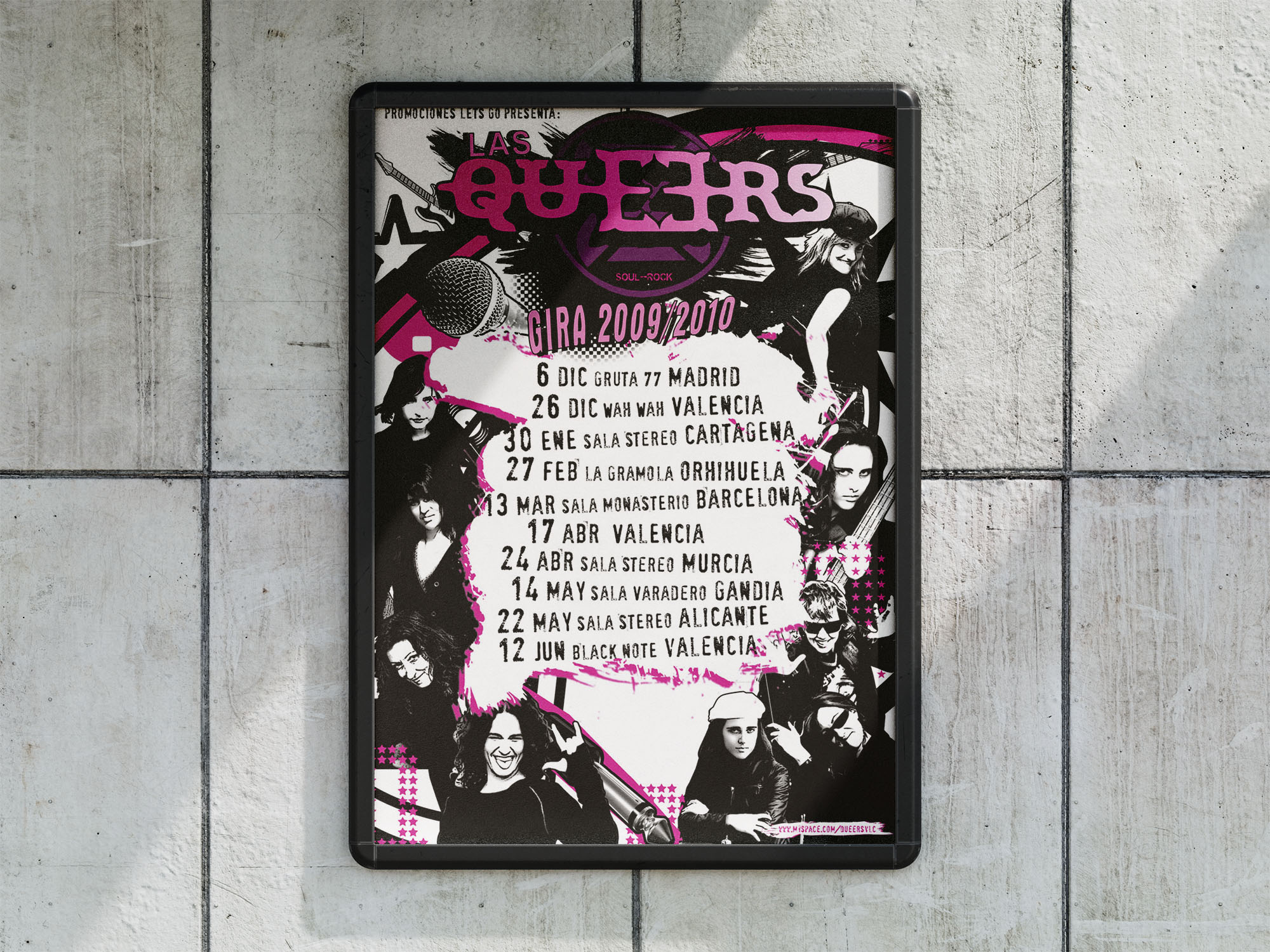 Las Queers es una banda valenciana de punk rock con una estética y actitud marcadamente irreverentes, vinculadas a la cultura underground y al imaginario DIY. En el marco de su gira de conciertos 2009 / 2010, el grupo me encargó el diseño del cartel promocional.